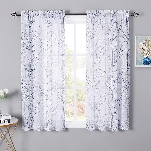 Amazon Com Treatmentex White And Blue Semi Sheer Curtains For