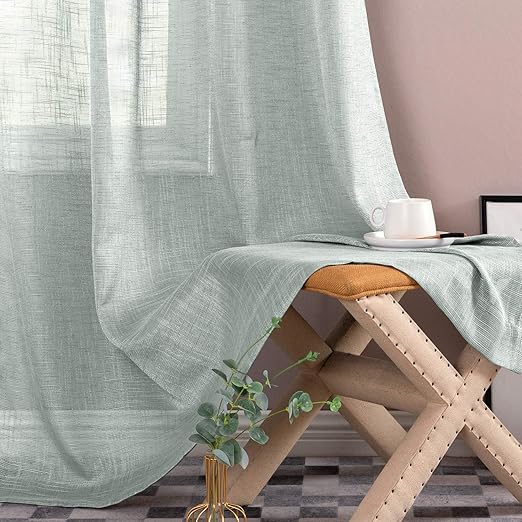Nicetown Living Room Sheer Curtains Rod Pocket Faux Linen
