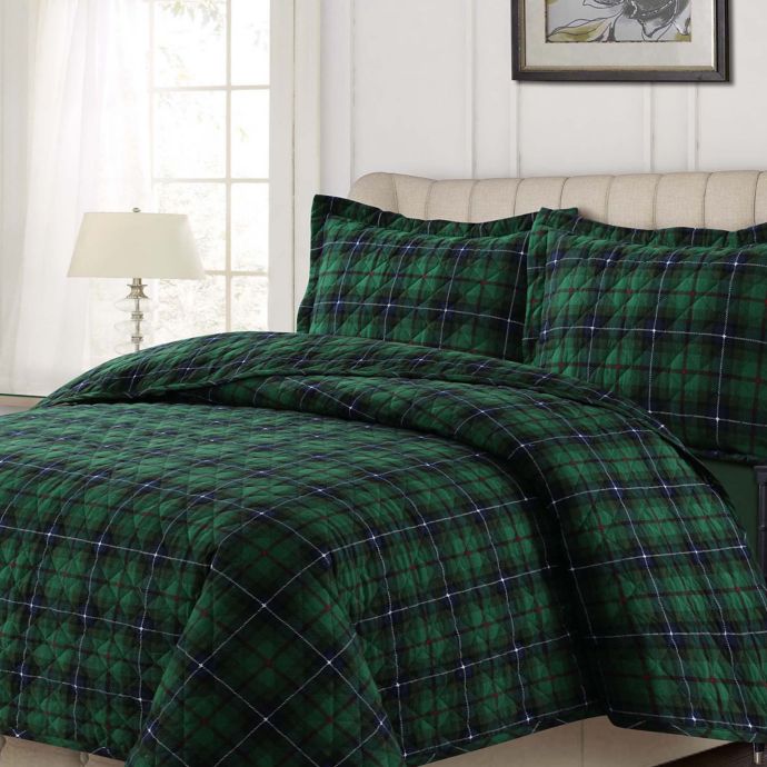 Tribeca Living Cambridge Plaid Quilt Set In Green Bed Bath Beyond