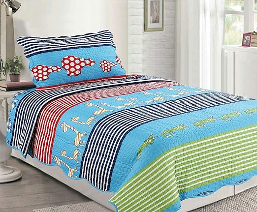Amazon Com Sapphire Home 2pc Twin Size Bedspread Quilt Set Bedding For Kids Teens Boys Girls Crocodile Giraffe Animals Design Blue Green Coverlet Twin Bedspread Pillow Sham Twin Xj21 Animals Home