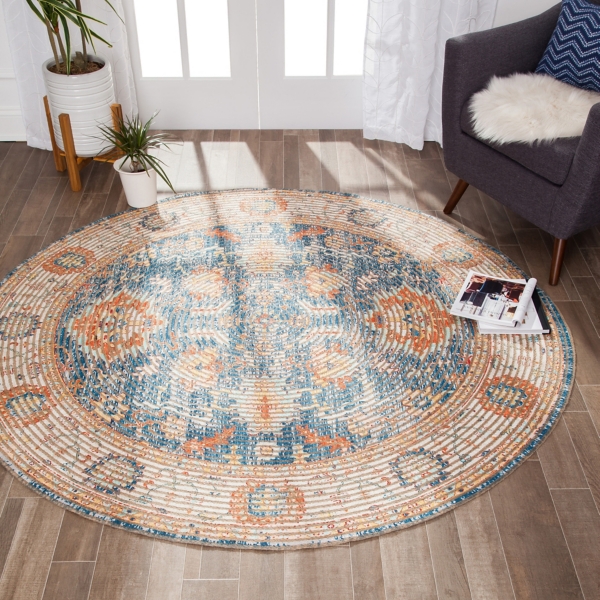 Round Blue And Yellow Blend Jute Rug 4 Round Contemporary