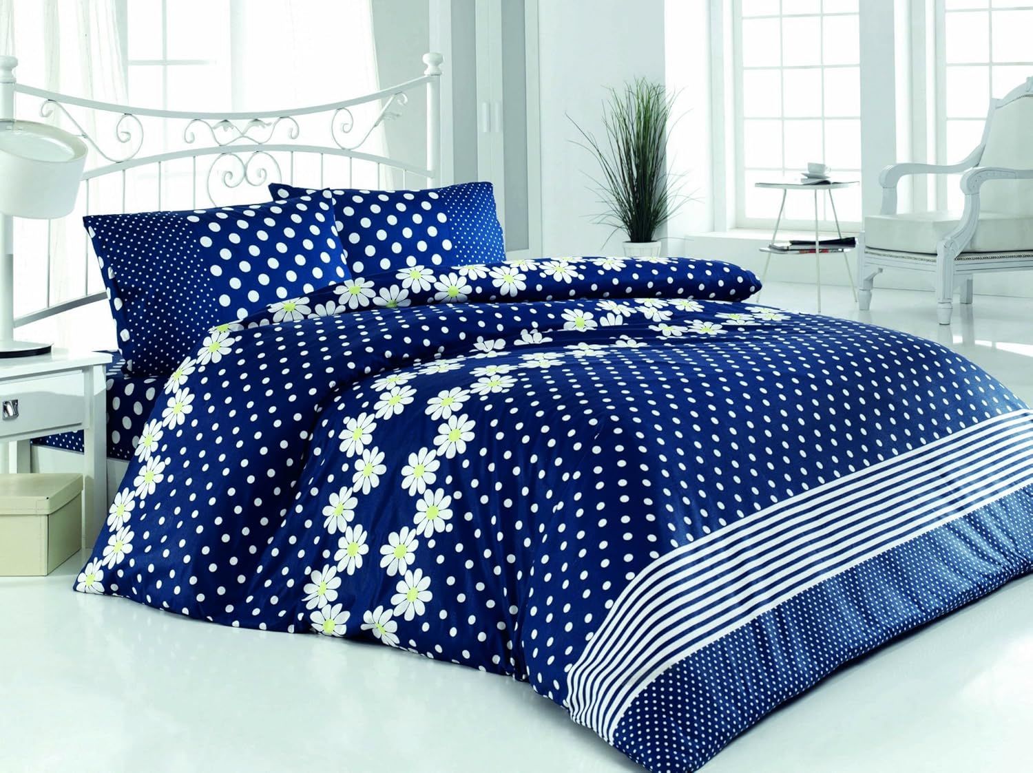 Amazon Com Dose Of Modern Fashion Dark Blue King Quilt Cover Set Fr 172prl68424 Dark Blue White Yellow Home Kitchen