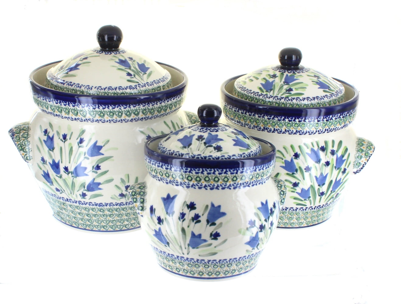 Blue Rose Polish Pottery Blue Tulip Large Canister Set Walmart