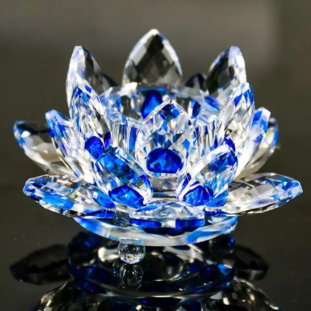 Crystal Lotus Flower Candle Holder Tealight Home Feng Shui Decor