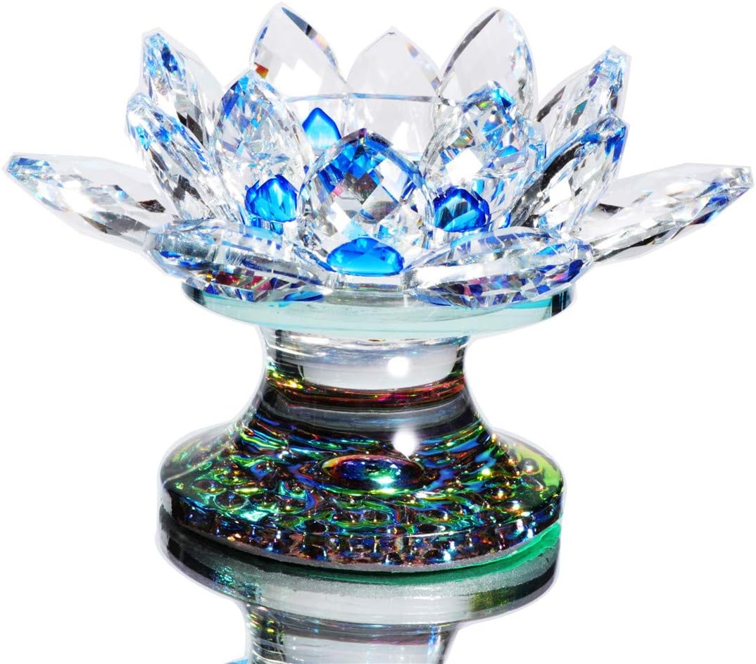 Amazon Com Ygfly Crystal Lotus Candle Holder 4 8 Inch Sapphire