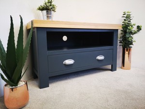 Blue Oak Corner Tv Unit Painted Television Cabinet Dark Navy