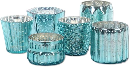 Amazon Com Teal Glass Mercury Votive Holder Set Of 6 Home Kitchen