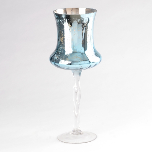 Peacock Mercury Glass Goblet Candle Holder Blue Green