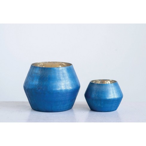 Creative Co Op Small Embossed Blue Mercury Glass Votive Holder