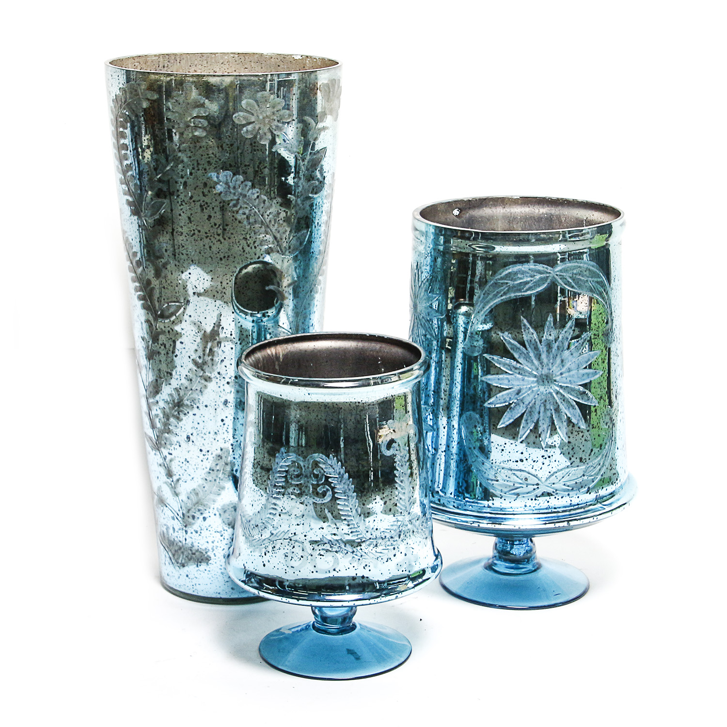 Shop Set Of 3 Blue Mercury Glass Goblets Overstock 22988561