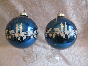 Vintage Blue Mercury Glass Ornaments 1 Embossed Baubles