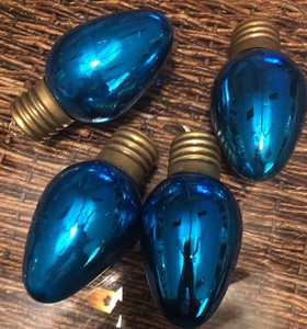 Vtg Large Blue Mercury Glass Christmas Light Bulb Ornament Dept