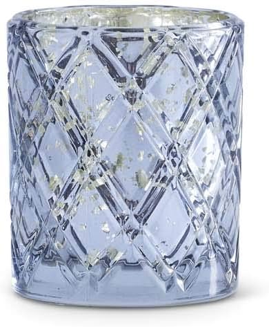 Creative Co Op Small Embossed Blue Mercury Glass Votive Holder