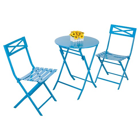 3 Piece Folding Metal Bistro Set Blue Captiva Design Target