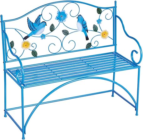 Collections Etc Blue Bird Metal Scrolling Garden Bench Perfect