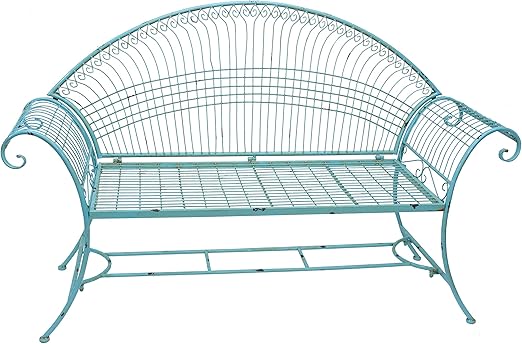 Peacock Blue Metal Outdoor Garden Bench Collections Etc
