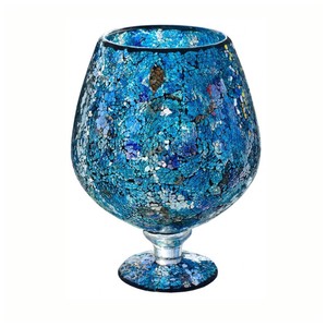 Large Blue Mosaic Glass Goblet Vase Candle Holder Hurricane Vase