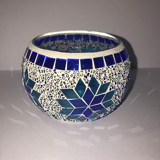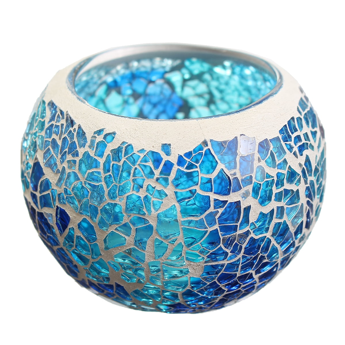 Blue Mosaic Glass Tealight Candle Holder Spa Bar Home Candle