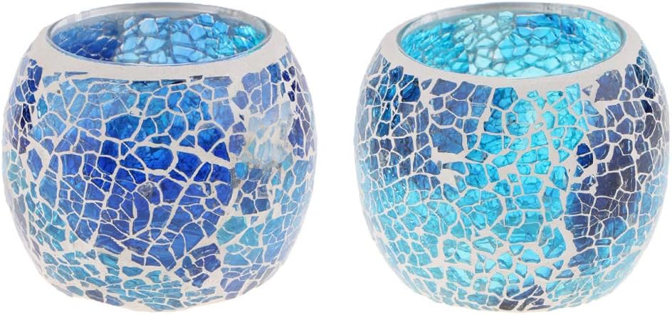 Sm Sunnimix 2pcs Set Blue Mosaic Glass Votive Tealight Candle