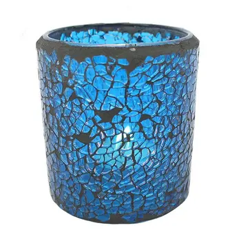 Moroccan Blue Glass Crackle Mosaic Candle Holder Tea Light Holder