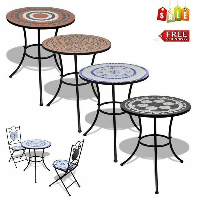 Bistro Table Set Mosaic With 2 Chairs Outdoor Patio Garden Blue