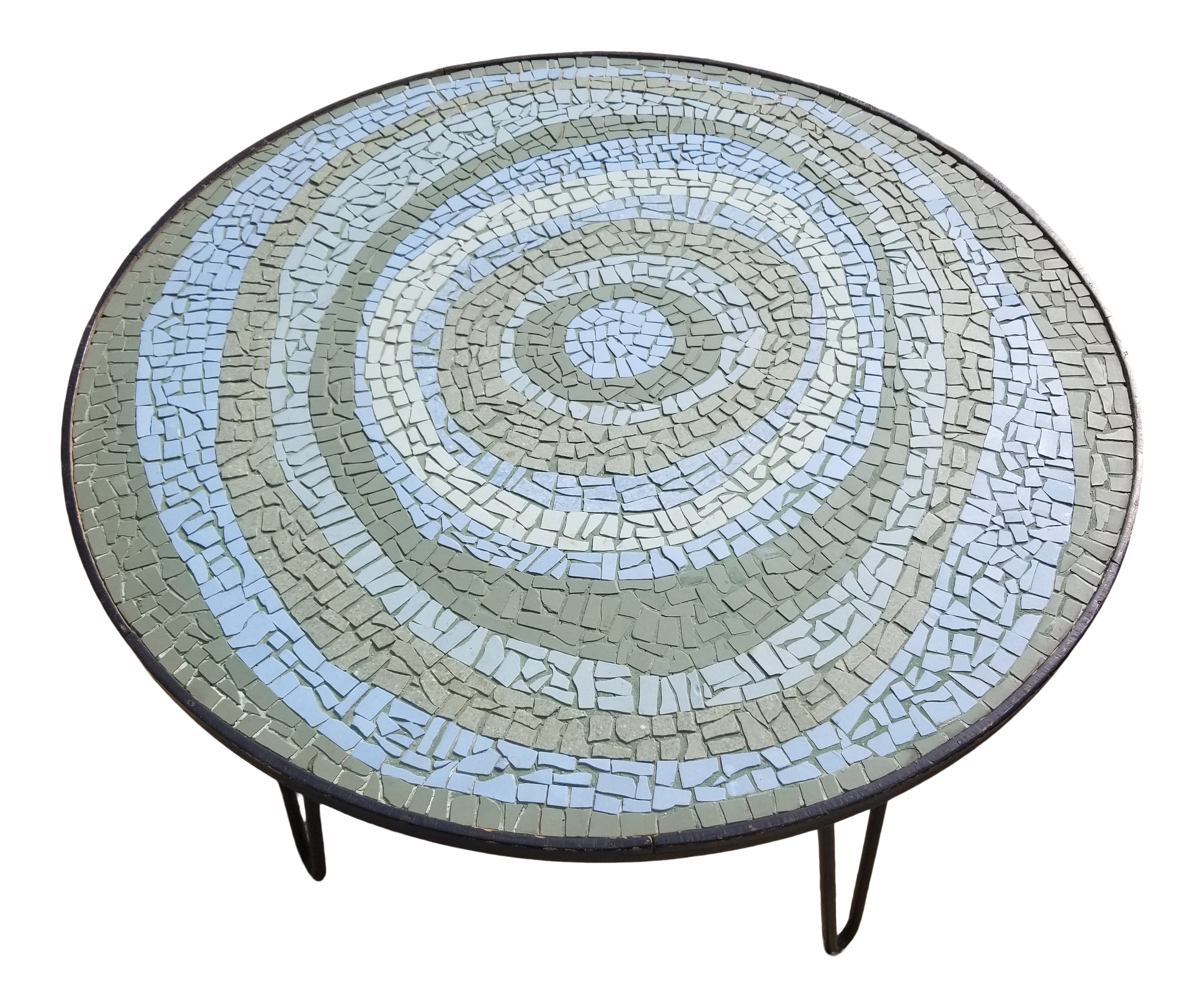 Mid Century Modern Mosaic Tile Side Table With Turquoise And Blue