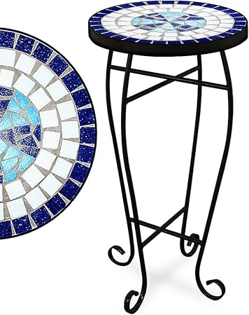 Mosaic Side Table Plant Table Blue White