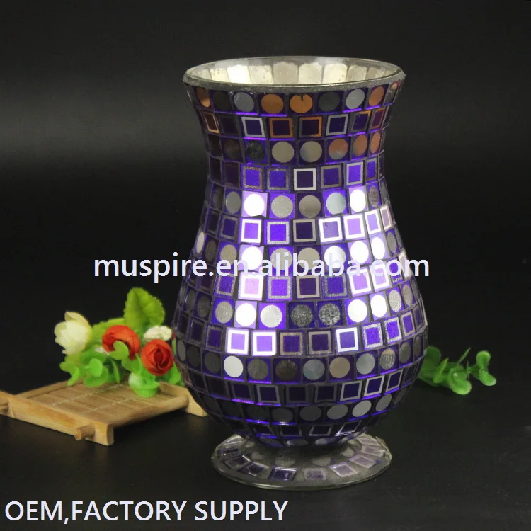 China Wholesale Best Sell Blue Mosaic Glass Flower Vases Buy