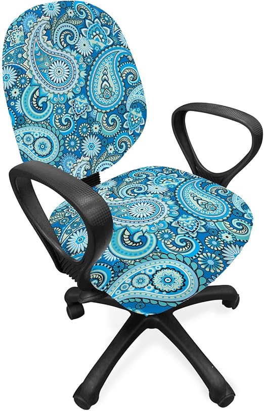 Amazon Com Ambesonne Blue Paisley Office Chair Slipcover Folk