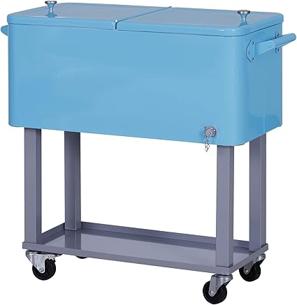 Outsunny 80 Quart Rolling Cooler Cart Portable Patio Ice Beer