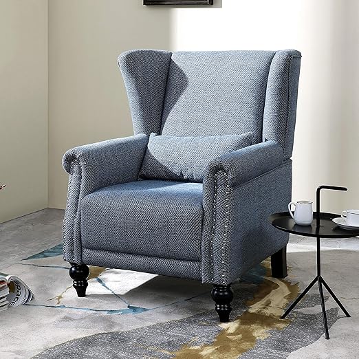 Modern Sleek Linen Fabric Accent Armchair Living Room Chair Blue