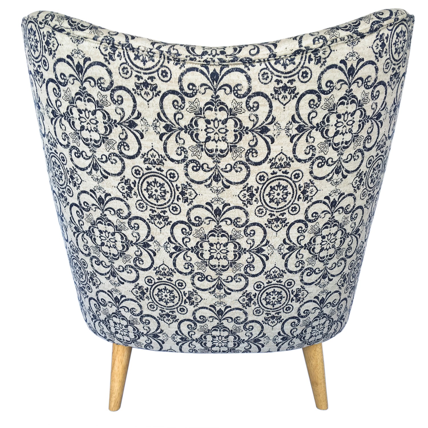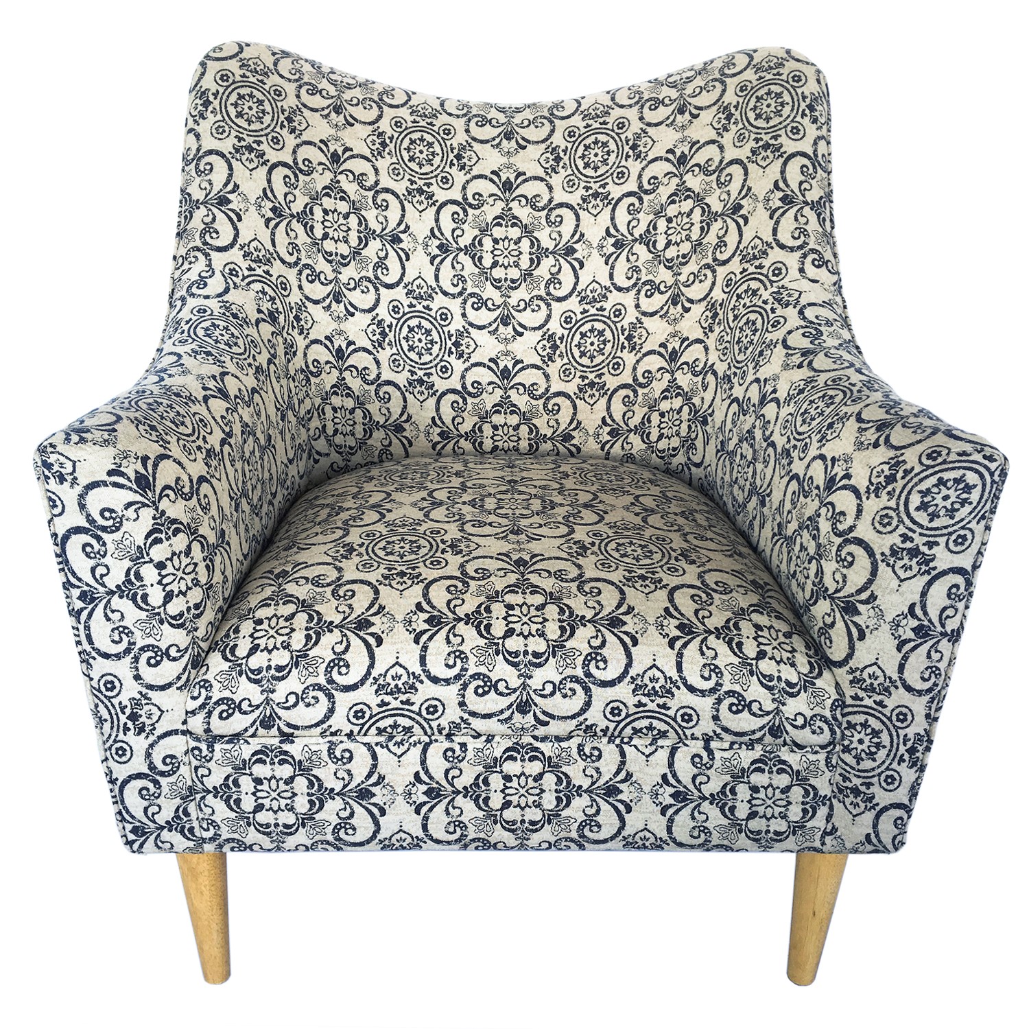 Blue Pattern Arm Chair Printed Fabric Sofa White Chair Blue Decor