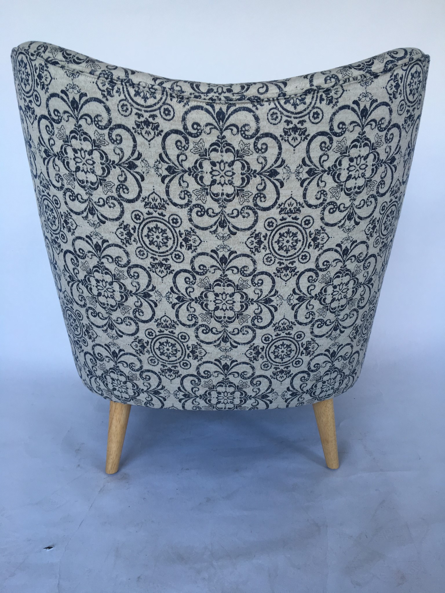 Indigo Deep Seat Midcentury Vintage Pattern Chair