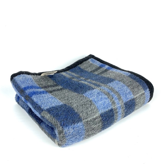 Vintage Wool Blue Plaid Blanketthrow