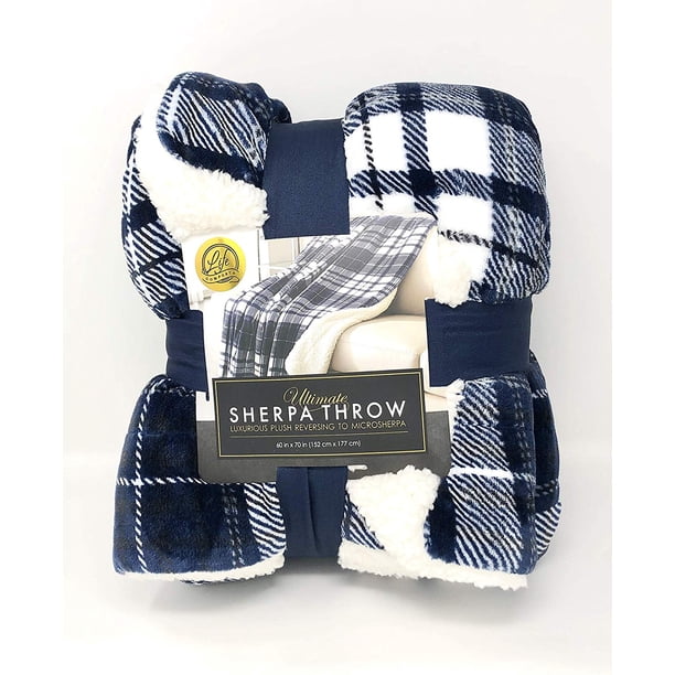 Life Comfort Microfiber Plush Polyester 60 X70 Large All Season Blanket For Bed Or Couch Ultimate Sherpa Throw Blue Plaid Walmart Com Walmart Com