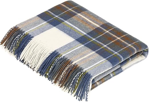 Amazon Com Moon Wool Plaid Throw Blanket Pure New Wool Muted Blue Stewart Tartan Made In Uk Home Kitchen