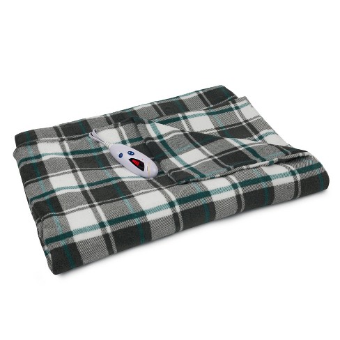 72 X 50 Extra Long Microplush Electric Throw Blanket Gray White Teal Blue Plaid Biddeford Blankets Target