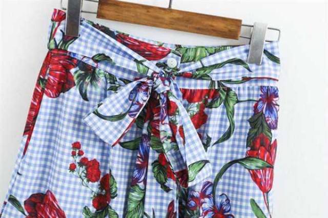 Blue Gingham Flower Skirt Shopee Indonesia