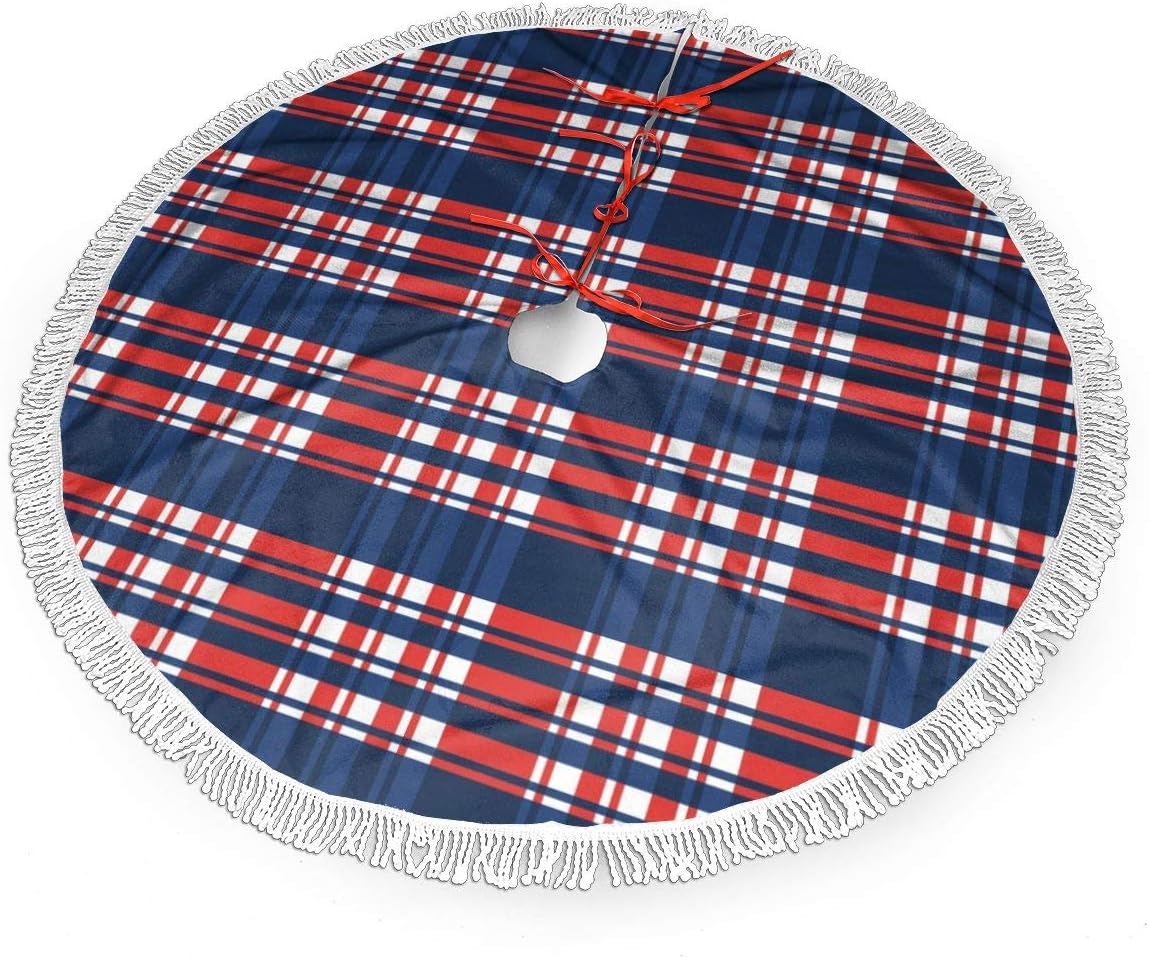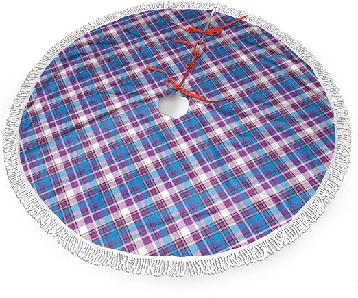 Fordawn Christmas Tree Skirt 48inch 35inch Plaid Tree Skirt Blue