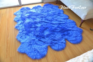 Soft Shaggy Faux Fur Area Rug Throw Accent Play Plush Royal Blue