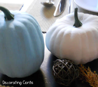 Blue Thanksgiving Decor With Dollar Store Pumpkins