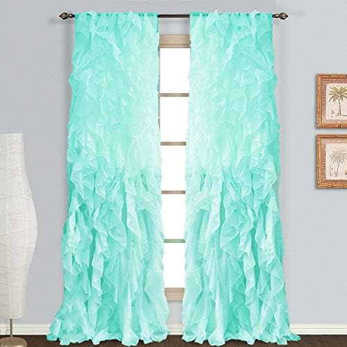 Dreamy Ruffled Curtain Drape Panel Shabby Beach Cottage Chic Aqua Blue