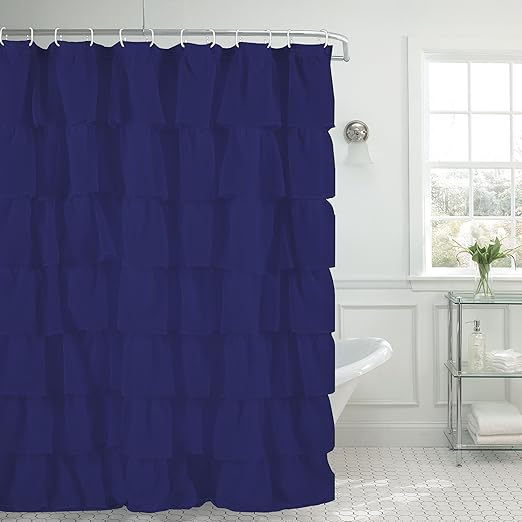 Ruffled Navy Blue Fabric Shower Curtain Amazon Ca Home Kitchen