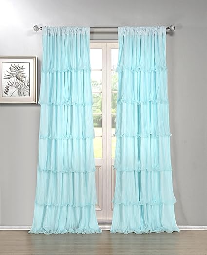 Divine Aqua Blue Shabby Chic Chiffon Ruffle Layered Curtain