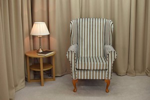 Blue Striped Cream Linen Armchair Hire Rental
