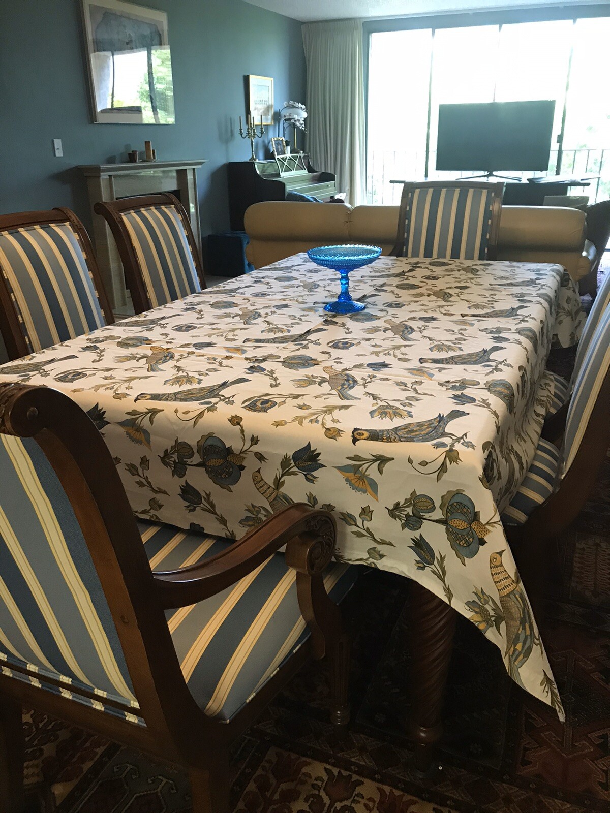 Set Of 8 Upholstered Blue And White Striped Dining Chairs