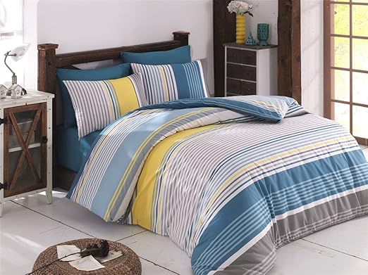 Amazon Com Dose Of Modern Citatic Ranforce Super King Quilt Cover Set De 110bhf42894 White Blue Yellow Grey Home Kitchen