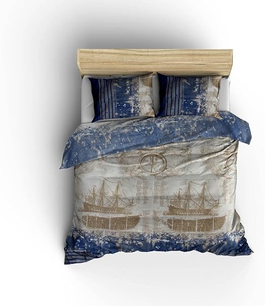 Amazon Com Dose Of Modern Lola Blue Ranforce Super King Quilt Cover Set Eu It 129ctn52604 Blue White Beige Grey Home Kitchen