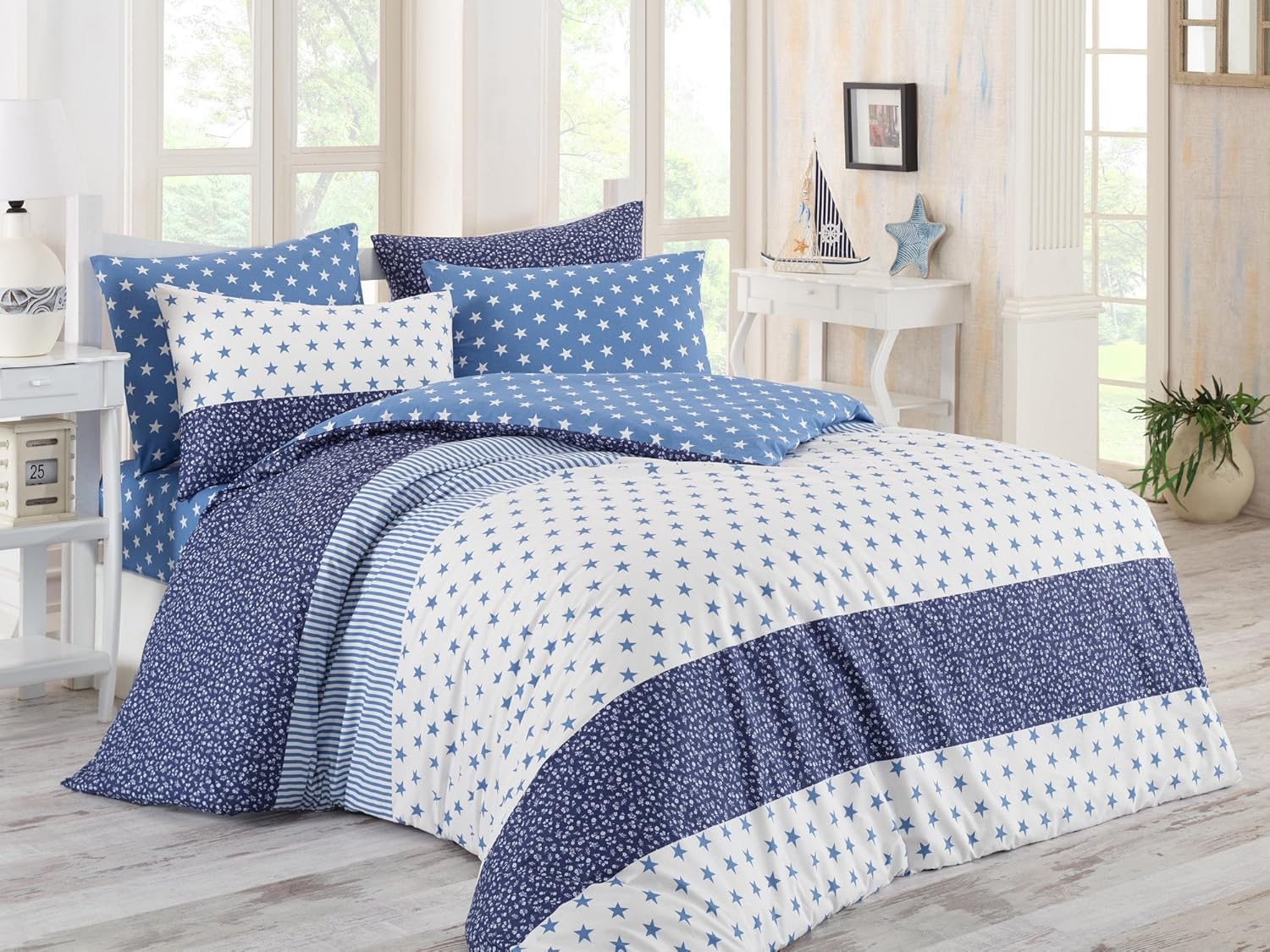 Amazon Com Dose Of Modern Stargate Blue Super King Quilt Cover Set Eu It 162elr58421 White Blue Dark Blue Home Kitchen