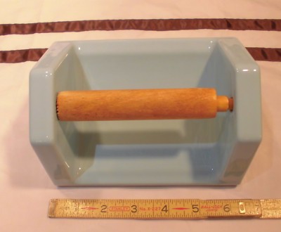 Vintage Blue Glossy Ceramic Toilet Paper Holder With Wood Roller